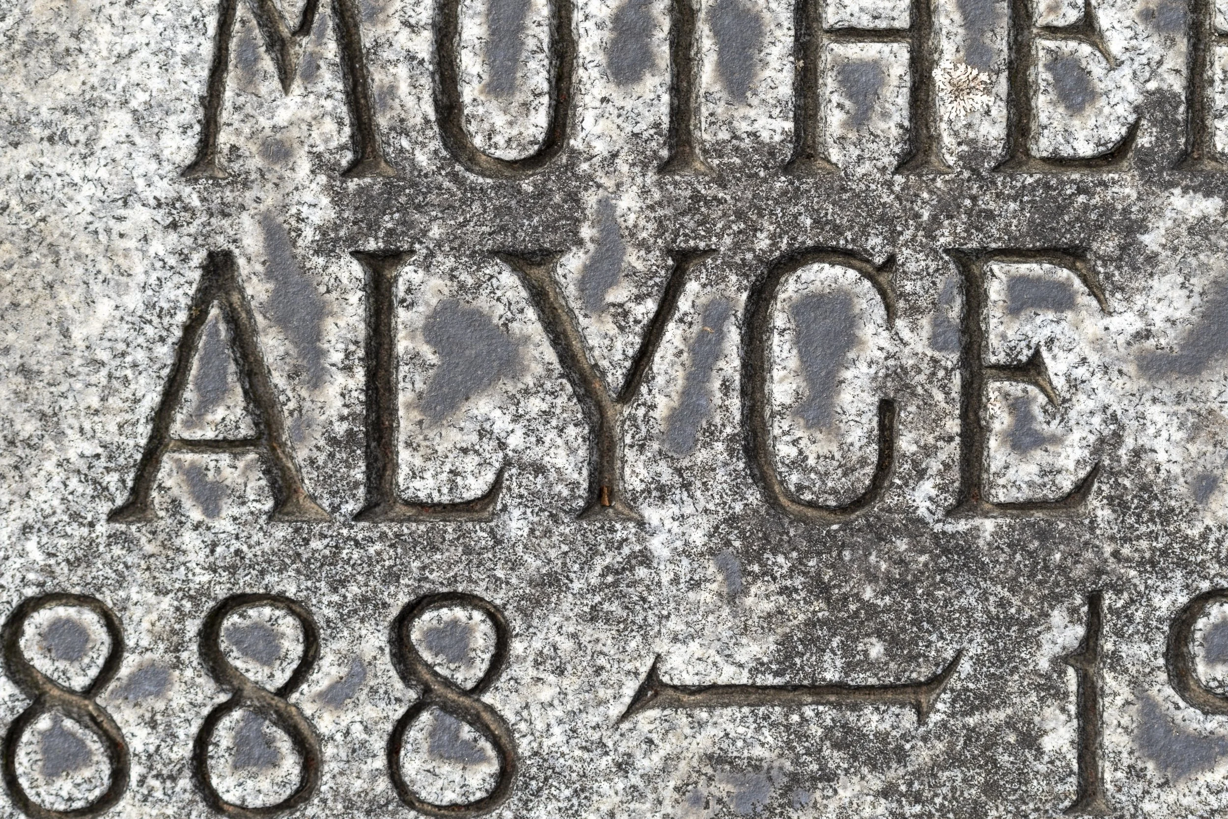 The installation presents headstones at Rosehill Cemetery, one of Chicago’s oldest memorial parks, highlighting the names of women. Many inscriptions identify women through relational terms, such as “his wife,” reflecting the ways women are historically remembered in relation to others rather than as individuals.
